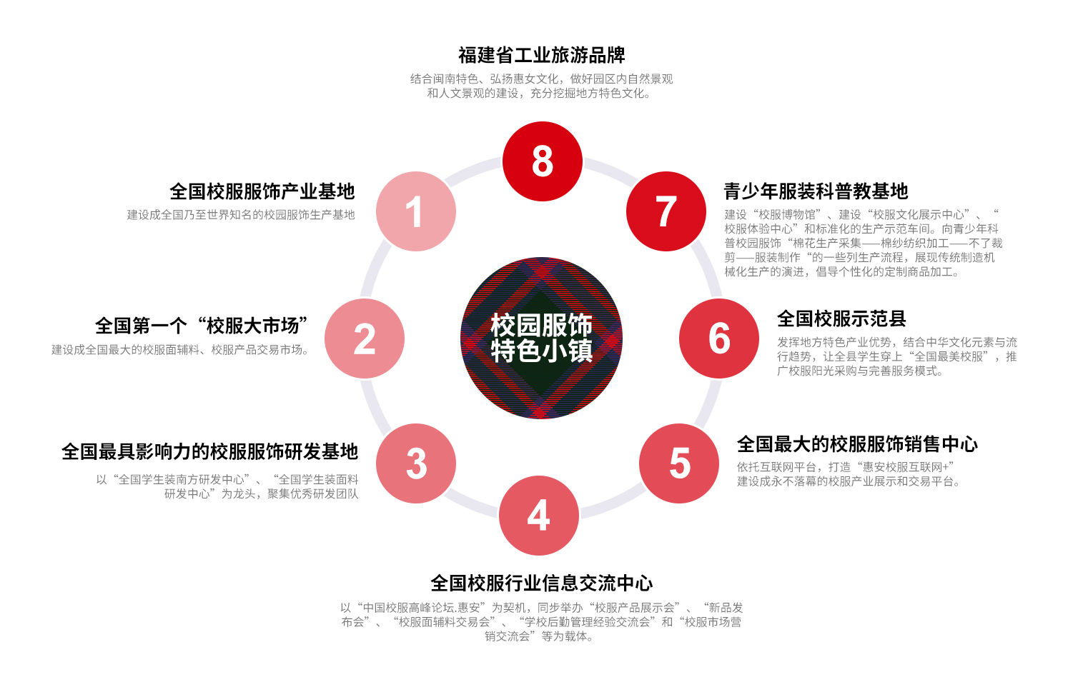 校服產(chǎn)業(yè)是惠安的傳統(tǒng)支柱產(chǎn)業(yè),也是伴隨著改革開發(fā)腳步發(fā)展起來的一個產(chǎn)業(yè)。特別是近年來,在中國教育裝備行業(yè)協(xié)會和上級黨委、政府的關心支持下,惠安的校服產(chǎn)業(yè)進入了高速發(fā)展階段,目前擁有生產(chǎn)企業(yè)500余家、銷售隊伍上萬人,產(chǎn)銷量占據(jù)全國半壁江山。惠安縣委、縣政府高度校服產(chǎn)業(yè)的發(fā)展,研究制定更具針對性的幫扶政策,加大對校服企業(yè)生產(chǎn)性設備引進、招投標等方面的扶持力度,助力產(chǎn)業(yè)做大做強,進一步推動“工業(yè)設計”在惠安校服企業(yè)“落地生根”“生根發(fā)芽”“茁壯成長”;進一步打響中國校園服飾產(chǎn)業(yè)基地品牌,推動中國校園服飾產(chǎn)業(yè)基地落地;進一步完善校服產(chǎn)業(yè)鏈條,彌補企業(yè)研發(fā)短板,做大做強惠安校服產(chǎn)業(yè)。本概念規(guī)劃是為創(chuàng)建“中國校園服飾產(chǎn)業(yè)基地”而進行的探討實踐。