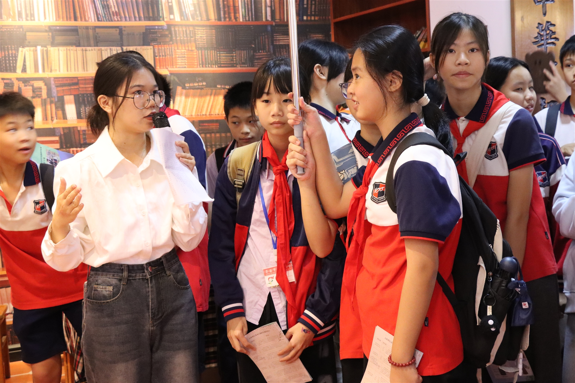 在講解員的引導(dǎo)下,孩子們走進(jìn)校服展示廳,了解校服的產(chǎn)生和歷史變遷,還參觀了解了校服的服飾面料、款式、紋樣以及背后蘊(yùn)藏的服飾文化。通過近距離觀察不同民族的服飾和傳統(tǒng)老式縫紉機(jī)、織布機(jī),他們不僅感受到了校服文化在歷史長河中的變遷及其魅力,也增強(qiáng)了學(xué)生的校服文化自信。