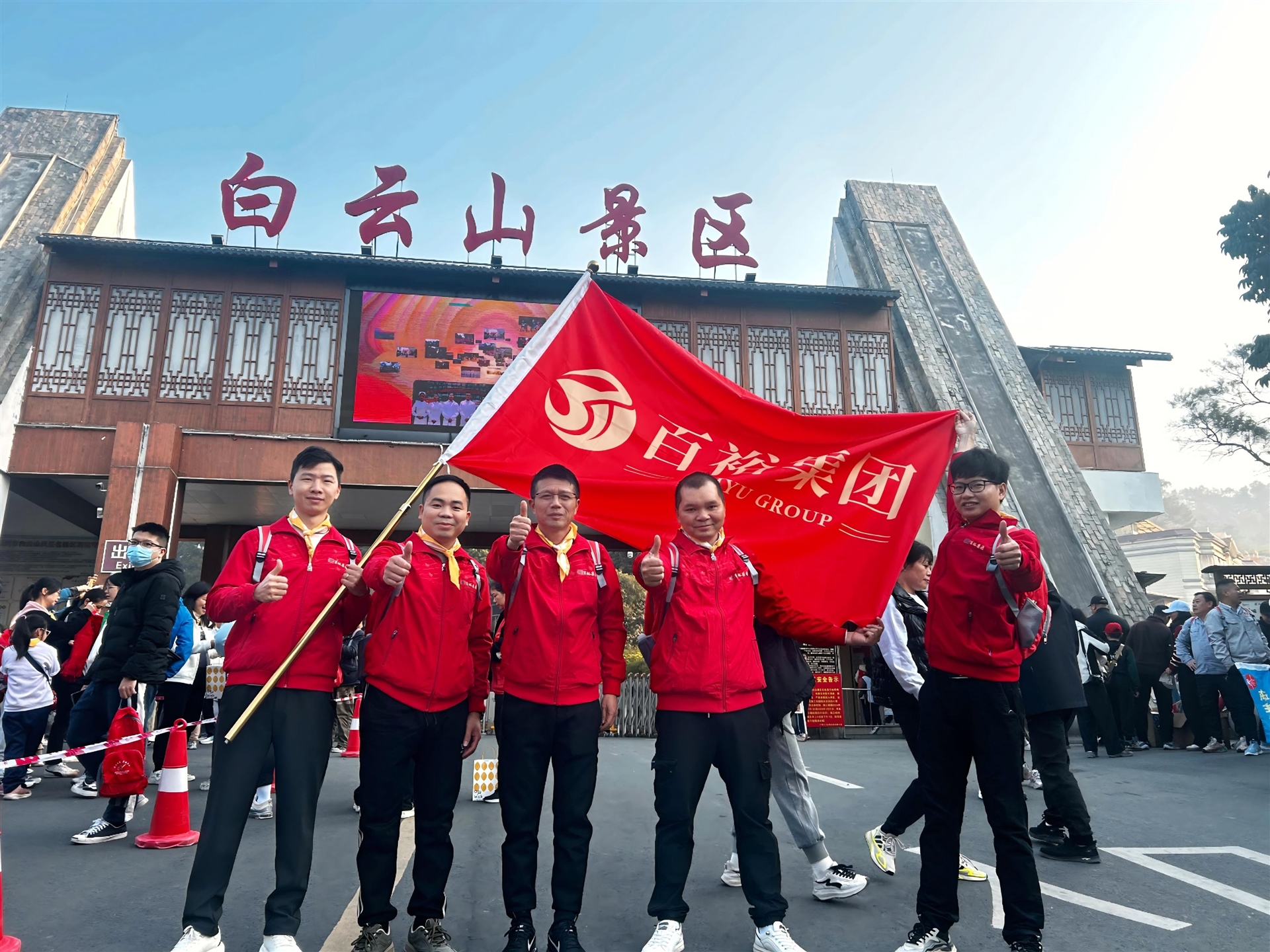 清晨,百裕代表們聚集在白云山正門,他們身著整齊劃一的隊(duì)服?,F(xiàn)場旗幟飄揚(yáng),歡聲笑語交織,大家臉上洋溢著對新年的憧憬與拼搏的豪情,準(zhǔn)備以腳步丈量高峰,用汗水澆灌夢想。