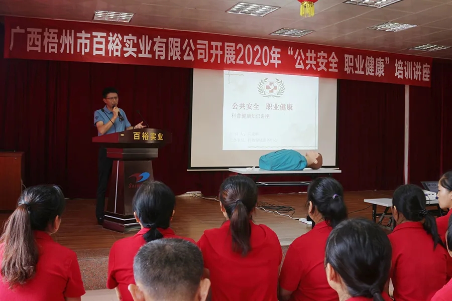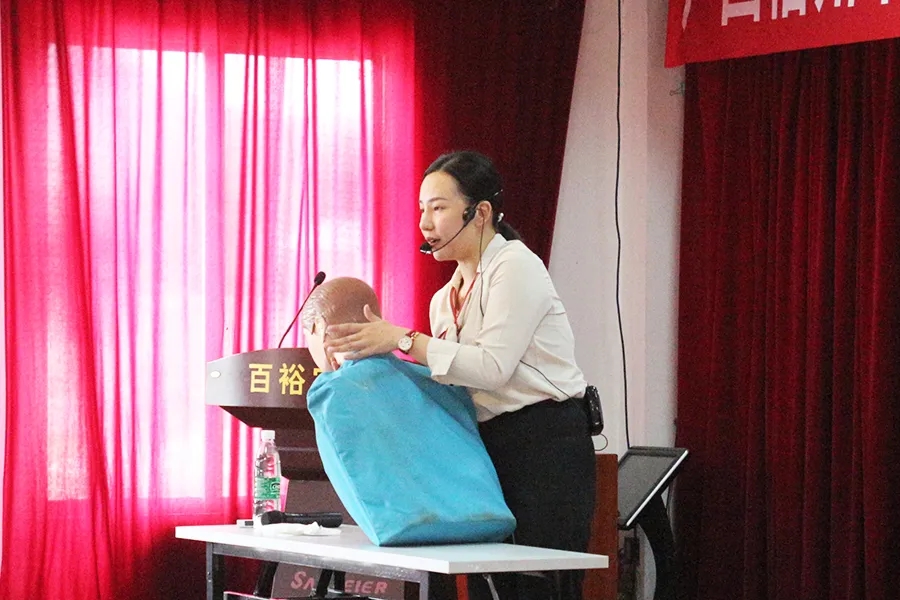 講座上,百裕實業(yè)總經(jīng)理曾晏來表示:“公共安全職業(yè)健康專題講座,是“安全生產(chǎn)月”系列活動之一。目前,公司積極開展形式多樣、內(nèi)容豐富的 “安全生產(chǎn)月”系列活動,希望通過這次活動,進一步增強員工們的自我保護、現(xiàn)場救護和自我保健能力 ,最大限度降低突發(fā)性傷害事件造成的危害,養(yǎng)成良好的健康生活習慣,提高員工職業(yè)健康意識,增強企業(yè)職業(yè)健康管理。本次培訓是比較規(guī)范的一些救護方法,請同事們認真聽,細心觀察老師的操作方法。”