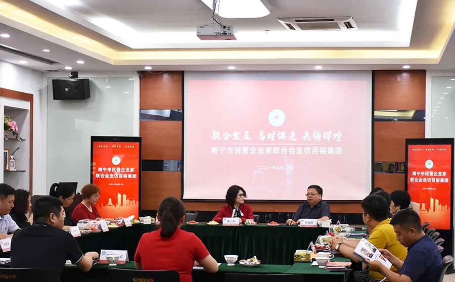為加深對會(huì)員單位的了解,進(jìn)一步加強(qiáng)會(huì)員企業(yè)之間的溝通聯(lián)系,5月20日,南寧市民營企業(yè)家聯(lián)合會(huì)執(zhí)行會(huì)長兼工會(huì)主席黃小萍率會(huì)員企業(yè)家到我公司開展走訪交流工作。