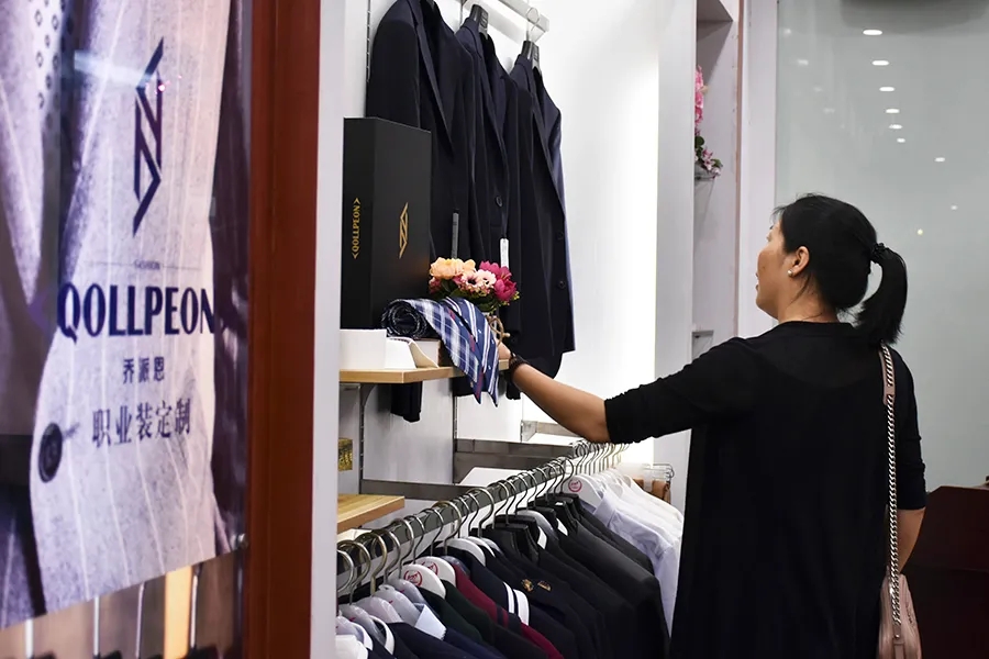 在產(chǎn)品展示廳,企業(yè)家們對我公司百裕校園時(shí)代校園服飾、喬派恩職業(yè)裝等品牌服飾表示濃厚興趣,并對產(chǎn)品的設(shè)計(jì)、工藝等方面表示贊賞。