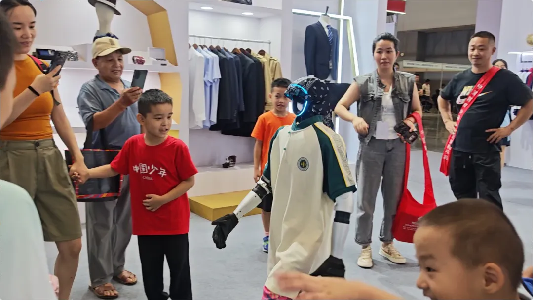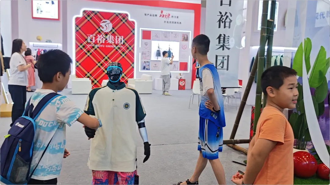 展會期間,還有智能機器人身著百裕集團校服,在展館內巡游并與觀眾互動。這一創(chuàng)新場景,成為了全場矚目的焦點。當傳統(tǒng)校服文化與前沿AI機器人技術相遇,碰撞出的不僅是視覺上的新奇體驗,更是對“科技賦能教育,裝備服務未來”理念的具象化表達。