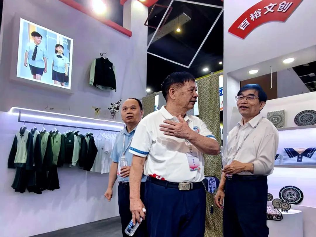 百裕集團展位備受矚目,教育部關心下一代工作委員會常務副主任、中國教育裝備行業(yè)協(xié)會專家委員會主任王富,廣西貿促會黨組成員、副會長、廣西國際商會副會長劉樹義,自治區(qū)教育廳原二級巡視員、廣西民族教育發(fā)展基金會副理事長陳標智,廣西教育技術和信息化中心主任肖榮亮,廣西教育裝備行業(yè)協(xié)會創(chuàng)會會長陳鐵華,廣西教育裝備行業(yè)協(xié)會代會長貴尚明等領導嘉賓蒞臨展位指導。他們對百裕集團將民族文化特色與現(xiàn)代校服設計理念相融合的創(chuàng)意實踐表示贊賞,充分認可百裕集團在推動教育裝備高質量發(fā)展所作出的積極貢獻,領導及嘉賓暖心的關懷與指導,是百裕集團在未來的發(fā)展道路上的強勁動力。