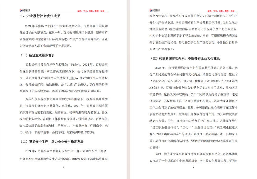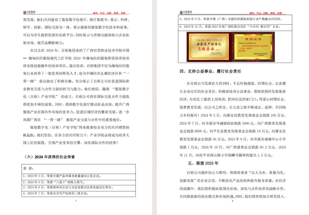 百裕集團(tuán)2024年度社會(huì)責(zé)任報(bào)告的發(fā)布,不僅是企業(yè)對(duì)社會(huì)各界的責(zé)任承諾,更是對(duì)自身可持續(xù)發(fā)展的戰(zhàn)略規(guī)劃。未來(lái),百裕集團(tuán)將繼續(xù)秉承"時(shí)尚傳承,責(zé)任同行"的理念,以責(zé)任鑄就品牌,以行動(dòng)回饋社會(huì),持續(xù)書寫企業(yè)與社會(huì)共同發(fā)展的新篇章,為行業(yè)可持續(xù)發(fā)展和社會(huì)和諧進(jìn)步貢獻(xiàn)更多力量。