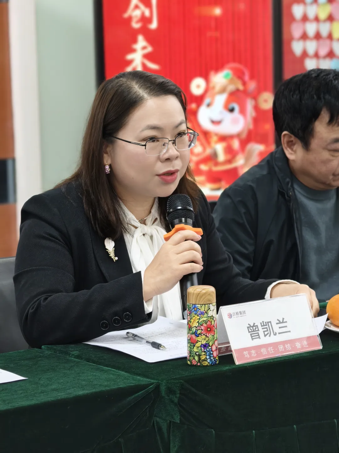 會議最后,財務(wù)中心經(jīng)理辛景芳、財務(wù)總監(jiān)羅少麟、市場總監(jiān)曾凱蘭、生產(chǎn)中心、營銷中心總經(jīng)理許敏玲、廣西海絲緣實業(yè)投資有限公司總經(jīng)理許婷瑜多位領(lǐng)導(dǎo)依次發(fā)言,深入分析年度工作成果與不足,明確未來發(fā)展方向。
