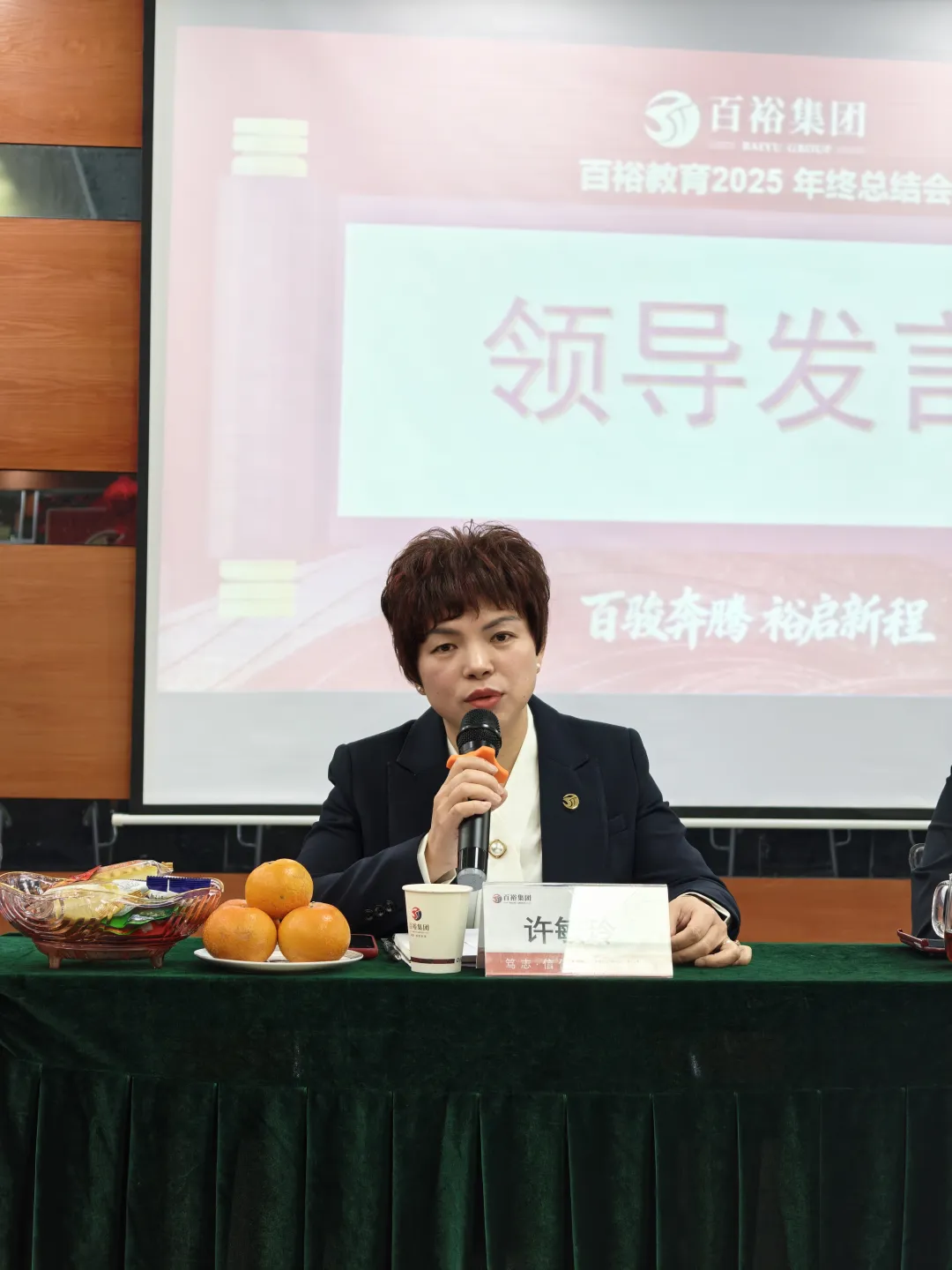許曲煌董事長系統(tǒng)回顧了2025年百裕集團(tuán)在穩(wěn)經(jīng)營、強創(chuàng)新、拓布局等方面取得的扎實成果,充分肯定全體同仁在激烈市場競爭中展現(xiàn)的韌性、在技術(shù)創(chuàng)新與數(shù)字化轉(zhuǎn)型中實現(xiàn)的突破、在研學(xué)產(chǎn)業(yè)與全球化布局中邁出的堅定步伐,以及在標(biāo)準(zhǔn)引領(lǐng)與社會責(zé)任履行中體現(xiàn)的擔(dān)當(dāng)。面向2026年,董事長強調(diào)必須清醒認(rèn)識當(dāng)前市場化競爭、技術(shù)融合、運營體系等方面存在的挑戰(zhàn),并提出以研發(fā)創(chuàng)新與AI賦能、深化改革與精益管理、市場開拓與全球布局、人才興企與梯隊建設(shè)、質(zhì)量為本與嚴(yán)格管控、黨建引領(lǐng)與文化凝聚、研學(xué)產(chǎn)業(yè)與社會責(zé)任等七大核心要求為行動綱領(lǐng),號召全體百裕人凝心聚力、實干篤行,共同推動集團(tuán)實現(xiàn)“破局而立、向新而行”的高質(zhì)量發(fā)展。董事長許曲煌的發(fā)言,為集團(tuán)新一年的工作指明了前行航向,激勵全體百裕人勇毅前行。