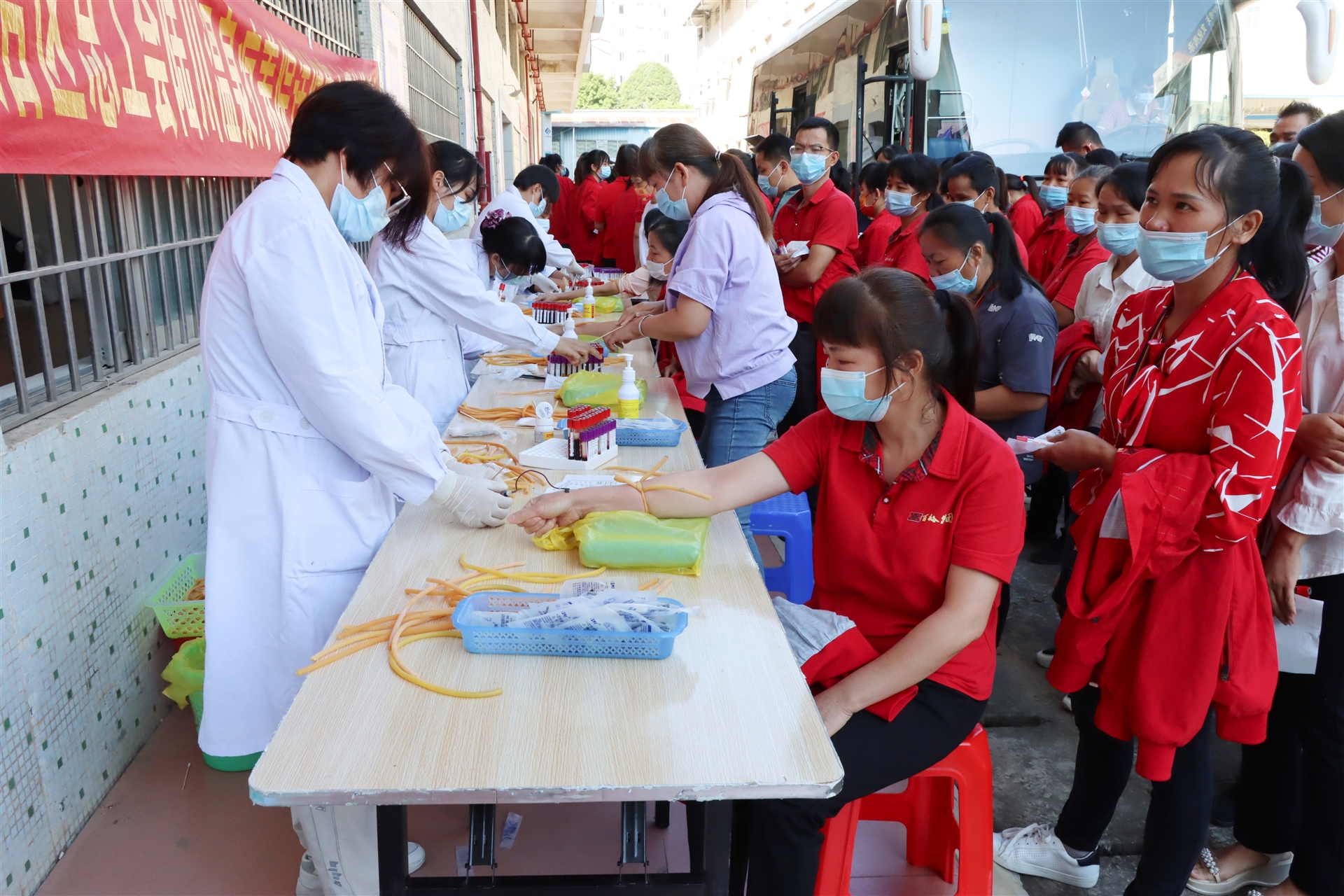 本次送健康體檢服務(wù),由廣西壯族自治區(qū)總工會陸川溫泉療養(yǎng)院的12名醫(yī)護人員上門開展,10月14日一早,體檢醫(yī)護車開進了百裕工業(yè)園,為百裕200多名一線產(chǎn)業(yè)工人提供:血液化驗、B超、肝/腎功能、心電圖、DR胸部影像、癌癥篩查等12項體檢內(nèi)容。