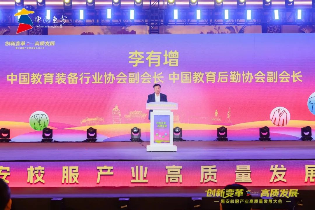 李有增代表中國教育裝備行業(yè)協(xié)會、中國教育后勤協(xié)會,對本次大會的召開表示熱烈的祝賀,并祝愿惠安校服產(chǎn)業(yè)在惠安縣委、縣政府的領導下,立足新起點、邁上新征程、開創(chuàng)新輝煌。李有增指出——