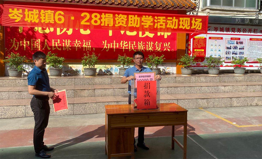 在岑城鎮(zhèn)6.28捐資助學活動現(xiàn)場中百裕集團捐款10000元,同時捐款10000元用于岑城鎮(zhèn)脫貧攻堅事業(yè),助力扶貧攻堅戰(zhàn)役!