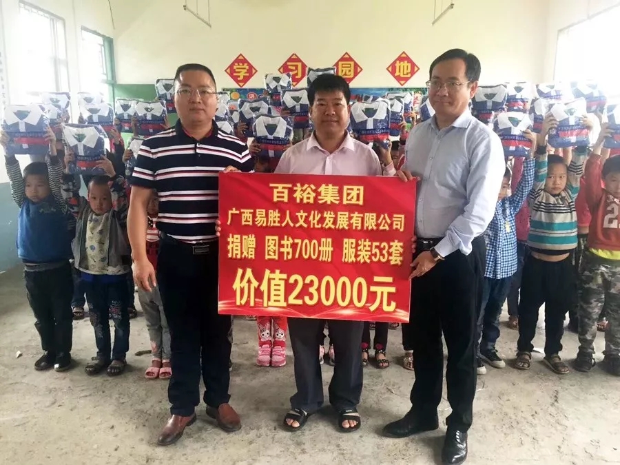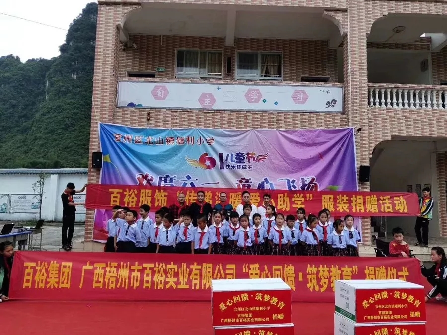 百裕集團服務河池地區(qū)已有6年多,多年來開展了一系列的捐贈助學的公益活動。時值六一兒童節(jié),百裕集團不忘初心,兌現“為環(huán)江村屯學校捐贈1106套愛心校服”承諾,并增加圖書等物資捐贈,在總經理林志煌的帶領下,先后走進環(huán)江縣10個鄉(xiāng)14個村級小學,惠及1106名小朋友,為孩子們送上節(jié)日的祝福。